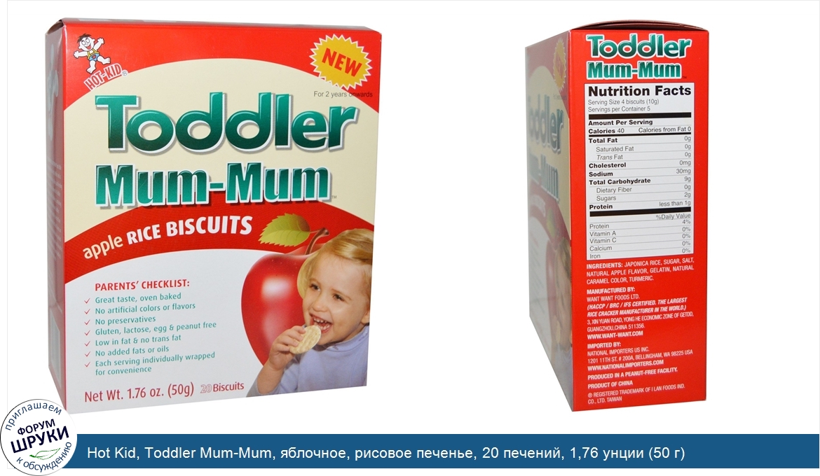 Друзья, если у вас есть отзыв/дополнение/комментарий/вопрос относительно Hot Kid, Toddler Mum-Mum, яблочное, рисовое печенье, 20 печений, 1,76 унции (50 г) - напишите его ответом в эту тему (это будет полезно всему сообществу в целом и вам в отдельности).