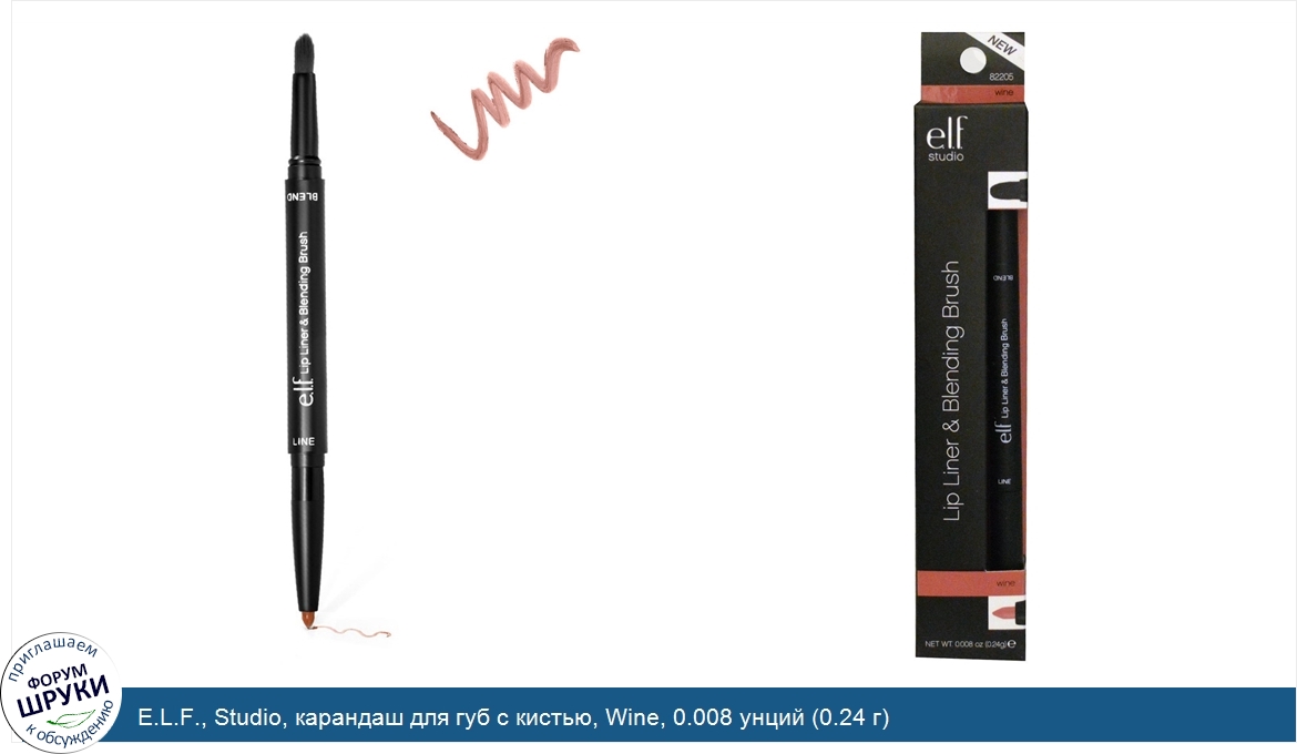 ru E.L.F., Studio, карандаш для губ с кистью, Wine, 0.008 унций (0.24 г)