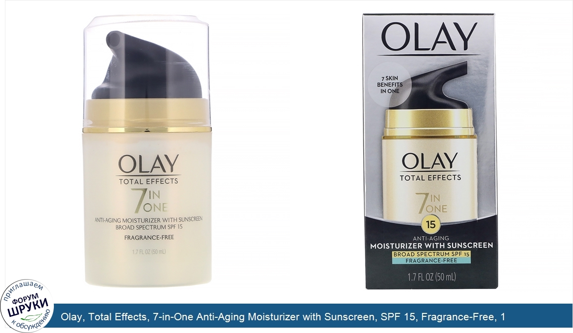 Друзья, если у вас есть отзыв/дополнение/комментарий/вопрос относительно Olay, Total Effects, 7-in-One Anti-Aging Moisturizer with Sunscreen, SPF 15, Fragrance-Free, 1.7 fl oz (50 ml) - напишите его ответом в эту тему (это будет полезно всему сообществу в целом и вам в отдельности).