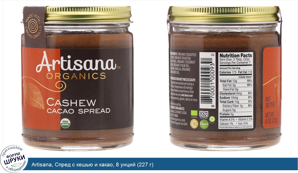Друзья, если у вас есть отзыв/дополнение/комментарий/вопрос относительно Artisana, Спред с кешью и какао, 8 унций (227 г) - напишите его ответом в эту тему (это будет полезно всему сообществу в целом и вам в отдельности).