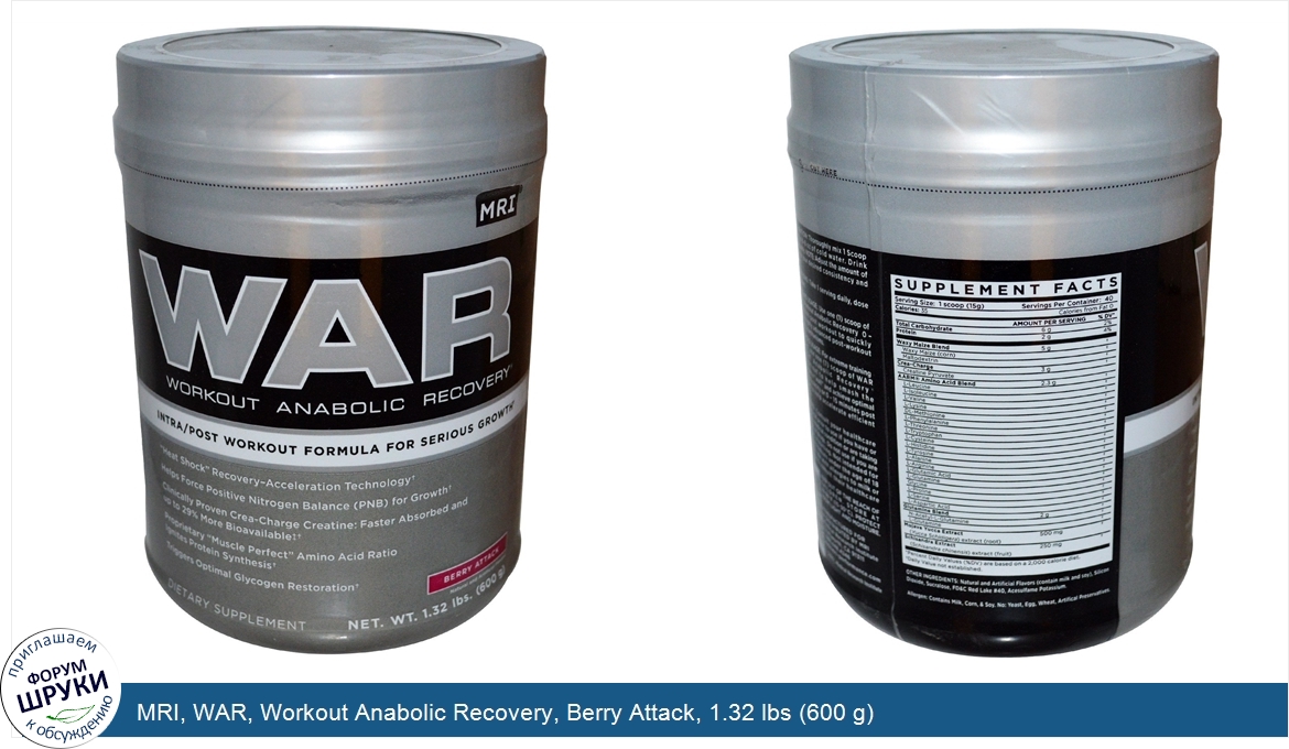 MRI, WAR, Workout Anabolic Recovery, Berry Attack, 1.32 lbs (600 g)