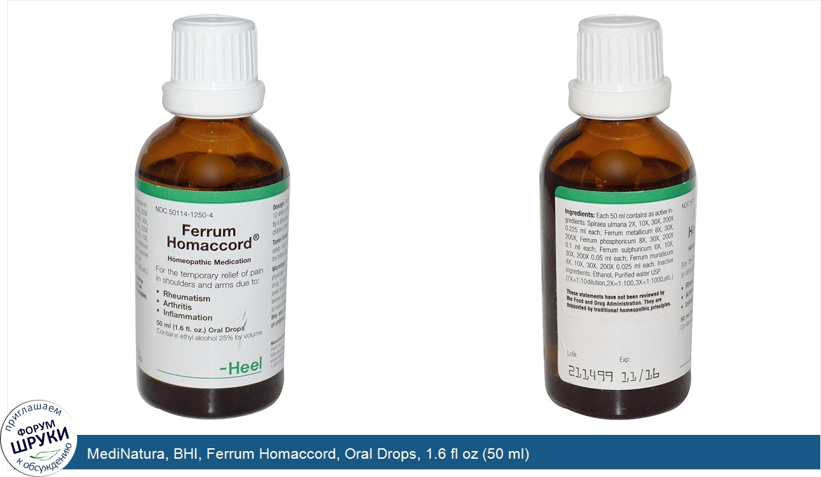 Друзья, если у вас есть отзыв/дополнение/комментарий/вопрос относительно MediNatura, BHI, Ferrum Homaccord, Oral Drops, 1.6 fl oz (50 ml) - напишите его ответом в эту тему (это будет полезно всему сообществу в целом и вам в отдельности).