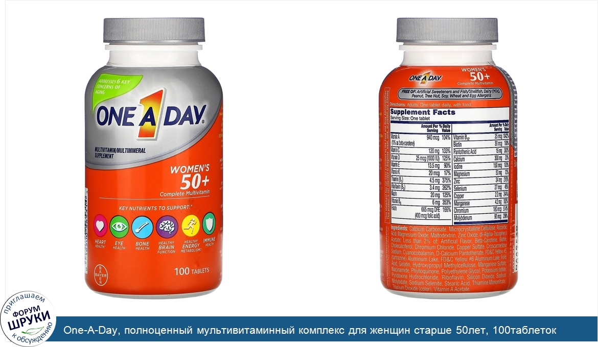 One-A-Day, полноценный мультивитаминный комплекс для женщин старше 50лет, 100таблеток