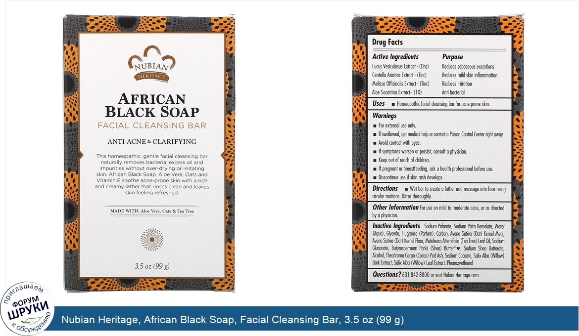Друзья, если у вас есть отзыв/дополнение/комментарий/вопрос относительно Nubian Heritage, African Black Soap, Facial Cleansing Bar, 3.5 oz (99 g) - напишите его ответом в эту тему (это будет полезно всему сообществу в целом и вам в отдельности).