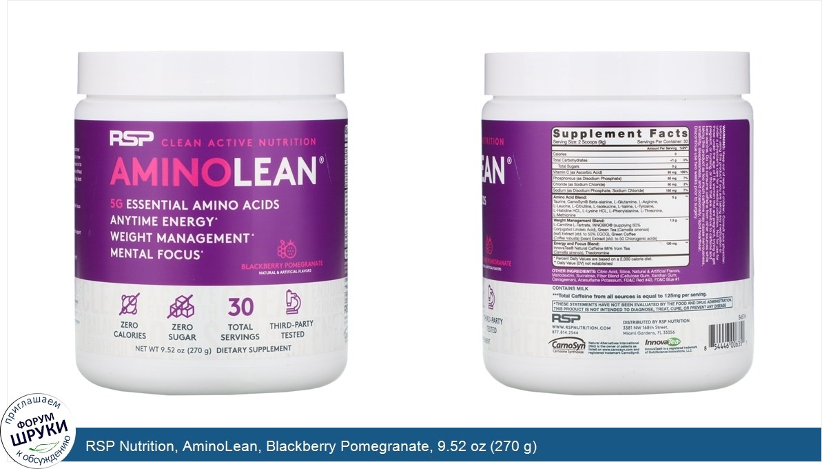 Друзья, если у вас есть отзыв/дополнение/комментарий/вопрос относительно RSP Nutrition, AminoLean, Blackberry Pomegranate, 9.52 oz (270 g) - напишите его ответом в эту тему (это будет полезно всему сообществу в целом и вам в отдельности).