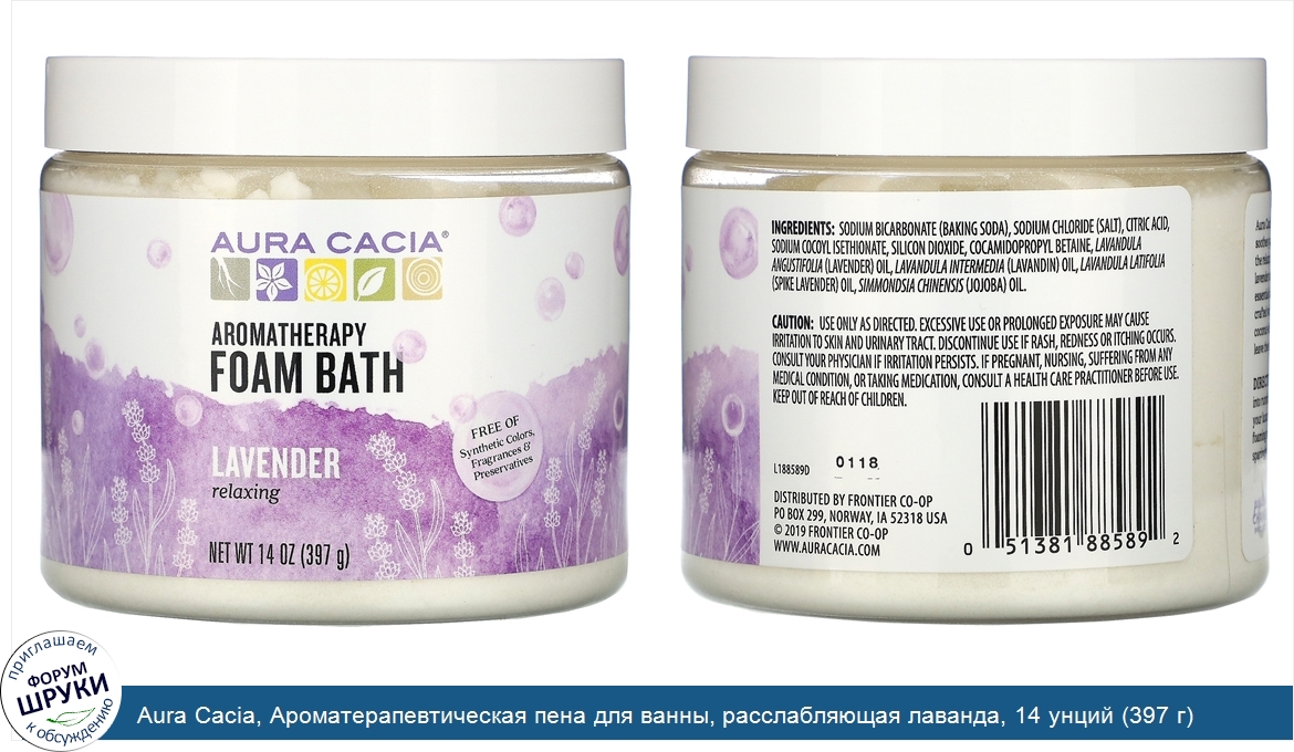 [DESCRIPT]Pure Essential Oils. Tested Verified For Purity. Not Tested on Animals. No Synthetic Colors or Fragrances. Paraben-Free. Safe for Spas Whirlpools. The Authentic Aromatherapy Experience. Aura Cacia's Relaxing Lavender soothes your whole being with the relaxing combination of calming lavender and purifying lavandin essential oils. Our foam baths are crafted with balancing jojoba and gentle coconut cleansers, leaving the skin soft and silky smooth. Create an at-home spa treatment that calms the senses, purifies the body and balances the spirit. ~ A Blend of 100% Pure Botanical Ingredients ~. Lavender. relaxing, calming. Lavandin. purifying, soothing. Jojoba. balancing, fortifying.[/DESCRIPT]... (описание дополняется)