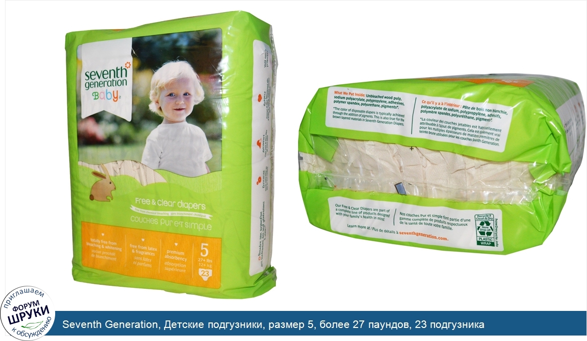 Друзья, если у вас есть отзыв/дополнение/комментарий/вопрос относительно Seventh Generation, Детские подгузники, размер 5, более 27 паундов, 23 подгузника - напишите его ответом в эту тему (это будет полезно всему сообществу в целом и вам в отдельности).