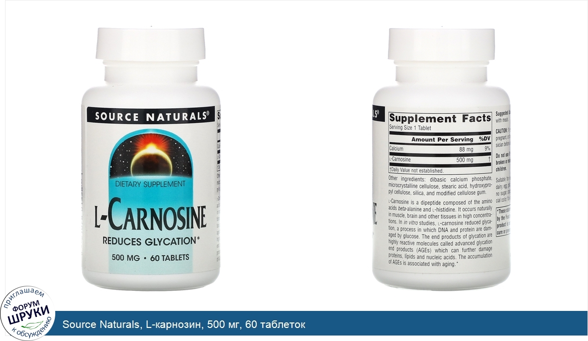 Категории: Source Naturals, Пищевые добавки, Аминокислоты, L-карнозин, Сорс Начэралс, 1094