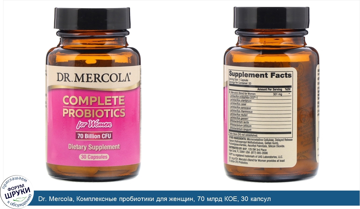 Dr. Mercola, Комплексные пробиотики для женщин, 70 млрд КОЕ, 30 капсул