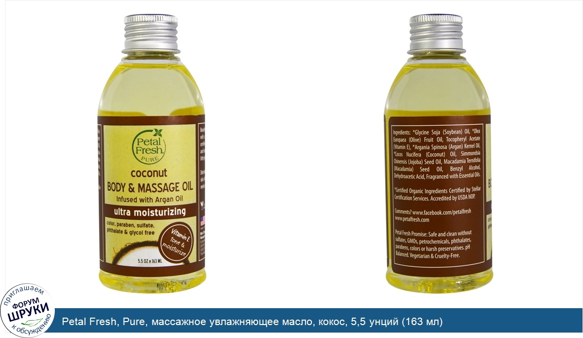 Petal Fresh, Pure, массажное увлажняющее масло, кокос, 5,5 унций (163 мл)