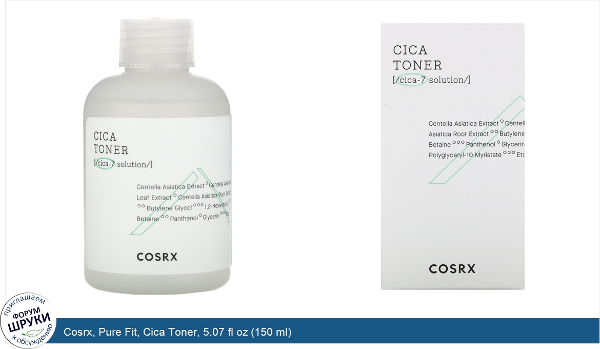 Друзья, если у вас есть отзыв/дополнение/комментарий/вопрос относительно Cosrx, Pure Fit, Cica Toner, 5.07 fl oz (150 ml) - напишите его ответом в эту тему (это будет полезно всему сообществу в целом и вам в отдельности).