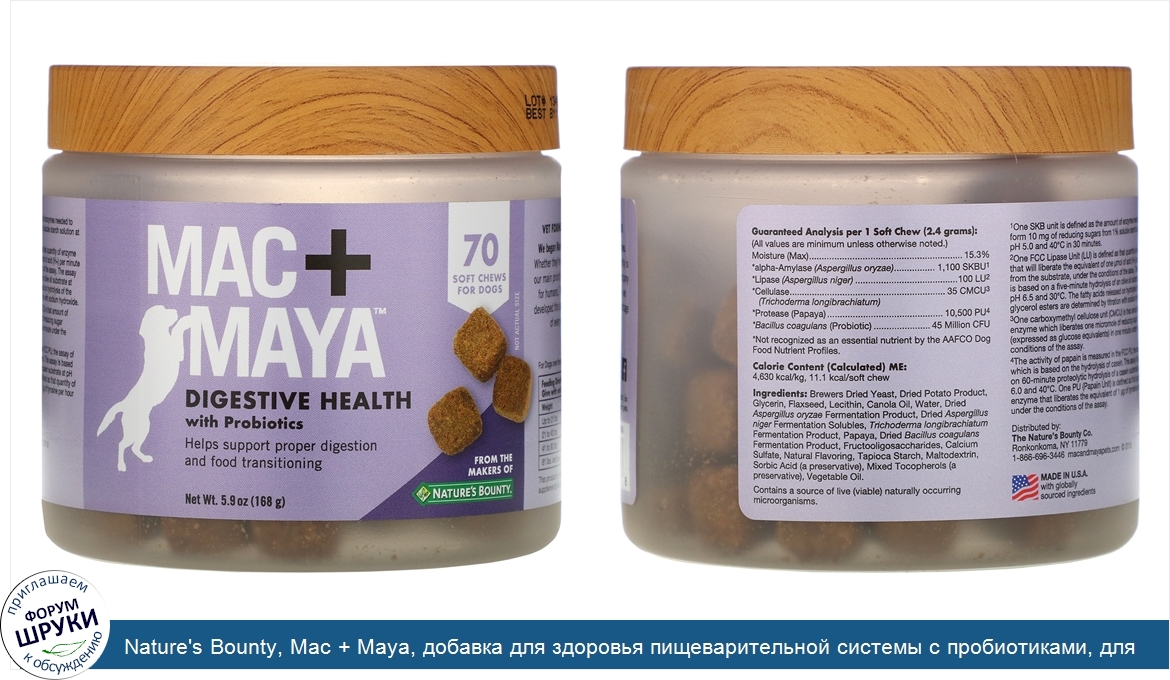 [DESCRIPT]Helps Support Proper Digestion and Food Transitioning. Vet Formulated + No Artificial Flavors or Colors. We began Mac+Maya inspired by a boundless love for our own pooches. Whether they're sofa snoozers or fetch all-stars, keeping our pets healthy is our main priority (after all we work at Nature's Bounty, a wellness company for humans). To help every Mac and Maya live their best doggie life, we developed this special line of supplements just for them. Plus, a percentage of every sales goes toward supporting service animals. Woof![/DESCRIPT]... (описание дополняется)