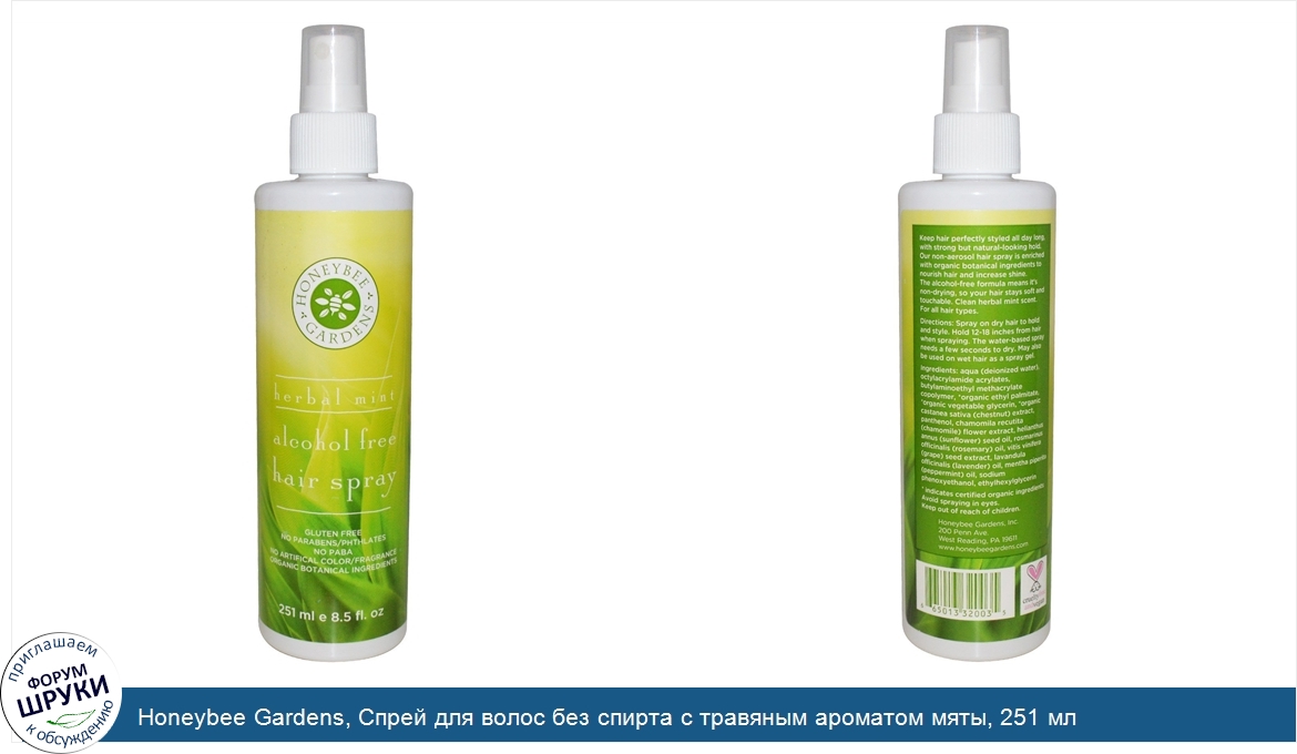 Друзья, если у вас есть отзыв/дополнение/комментарий/вопрос относительно Honeybee Gardens, Спрей для волос без спирта с травяным ароматом мяты, 251 мл - напишите его ответом в эту тему (это будет полезно всему сообществу в целом и вам в отдельности).