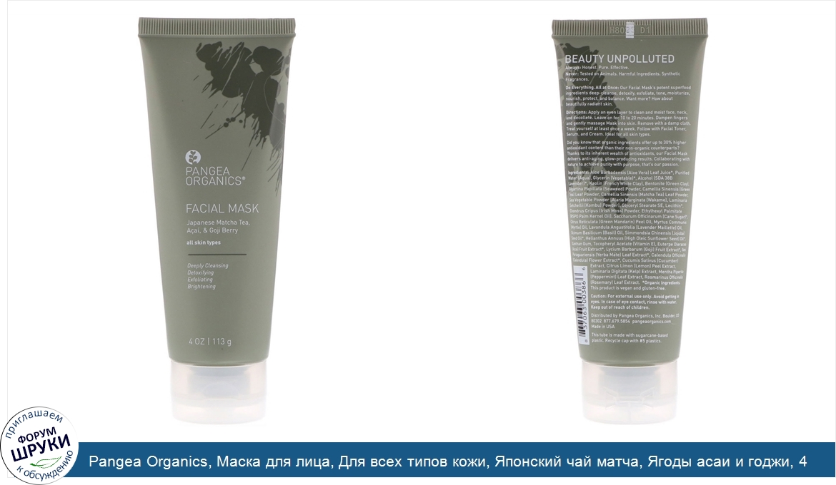Друзья, если у вас есть отзыв/дополнение/комментарий/вопрос относительно Pangea Organics, Маска для лица, Для всех типов кожи, Японский чай матча, Ягоды асаи и годжи, 4 унц. (113 г) - напишите его ответом в эту тему (это будет полезно всему сообществу в целом и вам в отдельности).