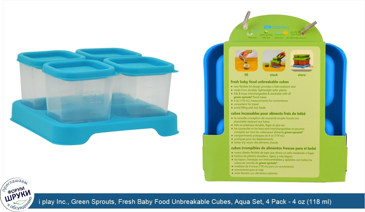 Друзья, если у вас есть отзыв/дополнение/комментарий/вопрос относительно i play Inc., Green Sprouts, Fresh Baby Food Unbreakable Cubes, Aqua Set, 4 Pack - 4 oz (118 ml) Each - напишите его ответом в эту тему (это будет полезно всему сообществу в целом и вам в отдельности).