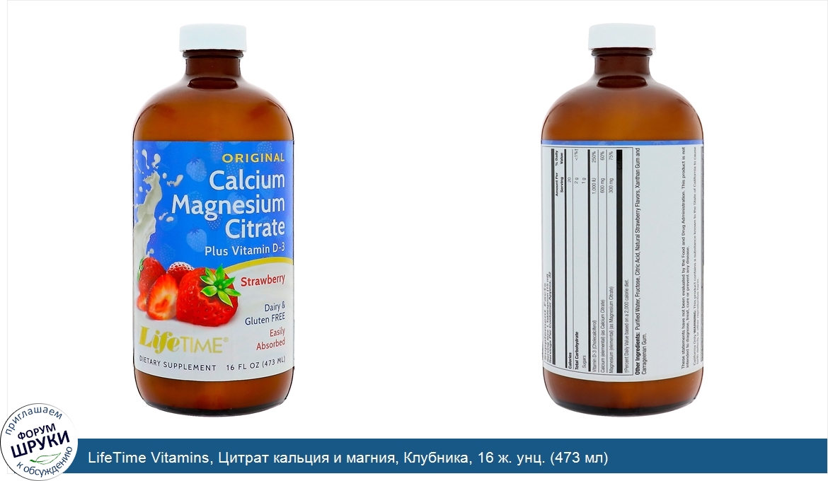 Друзья, если у вас есть отзыв/дополнение/комментарий/вопрос относительно LifeTime Vitamins, Цитрат кальция и магния, Клубника, 16 ж. унц. (473 мл) - напишите его ответом в эту тему (это будет полезно всему сообществу в целом и вам в отдельности).