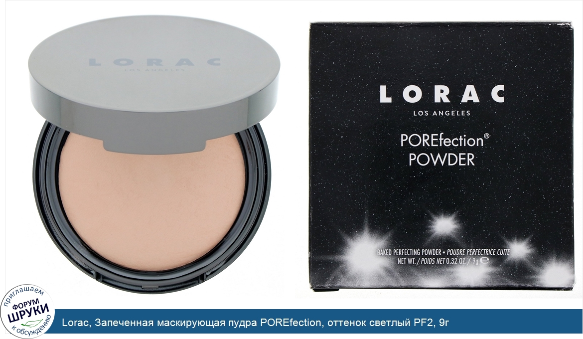 Lorac, Запеченная маскирующая пудра POREfection, оттенок светлый PF2, 9г