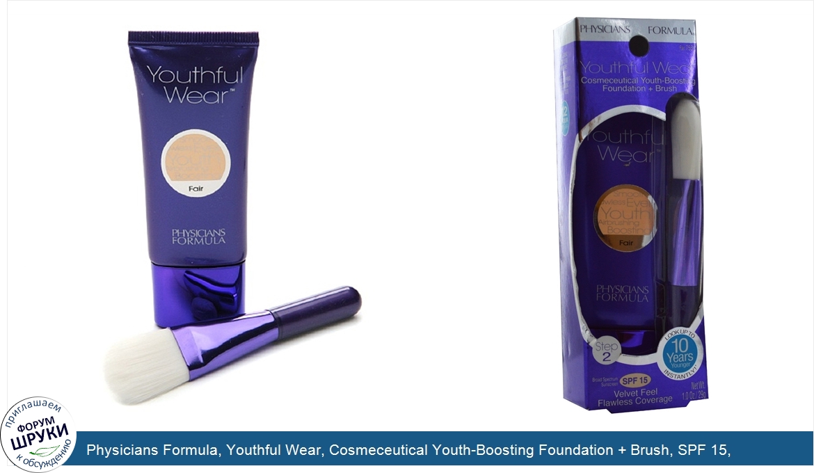 Physicians Formula, Youthful Wear, Cosmeceutical Youth-Boosting Foundation + Brush, SPF 15, Fair, 1.0 oz (29 g)