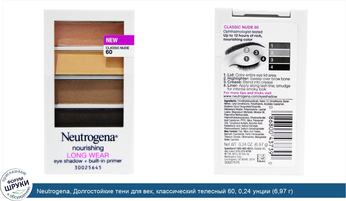 Друзья, если у вас есть отзыв/дополнение/комментарий/вопрос относительно Neutrogena, Долгостойкие тени для век, классический телесный 60, 0,24 унции (6,97 г) - напишите его ответом в эту тему (это будет полезно всему сообществу в целом и вам в отдельности).