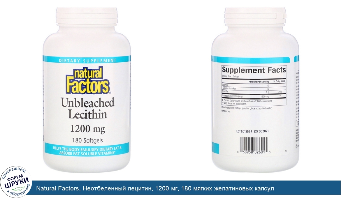 Друзья, если у вас есть отзыв/дополнение/комментарий/вопрос относительно Natural Factors, Неотбеленный лецитин, 1200 мг, 180 мягких желатиновых капсул - напишите его ответом в эту тему (это будет полезно всему сообществу в целом и вам в отдельности).