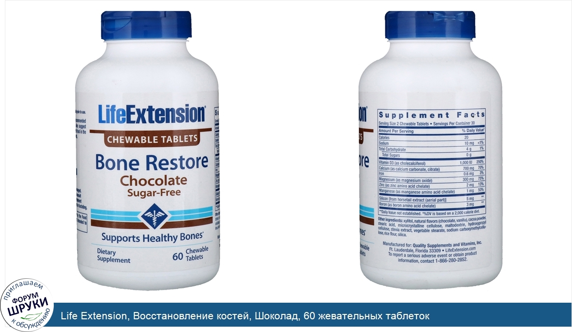Life Extension, Восстановление костей, Шоколад, 60 жевательных таблеток