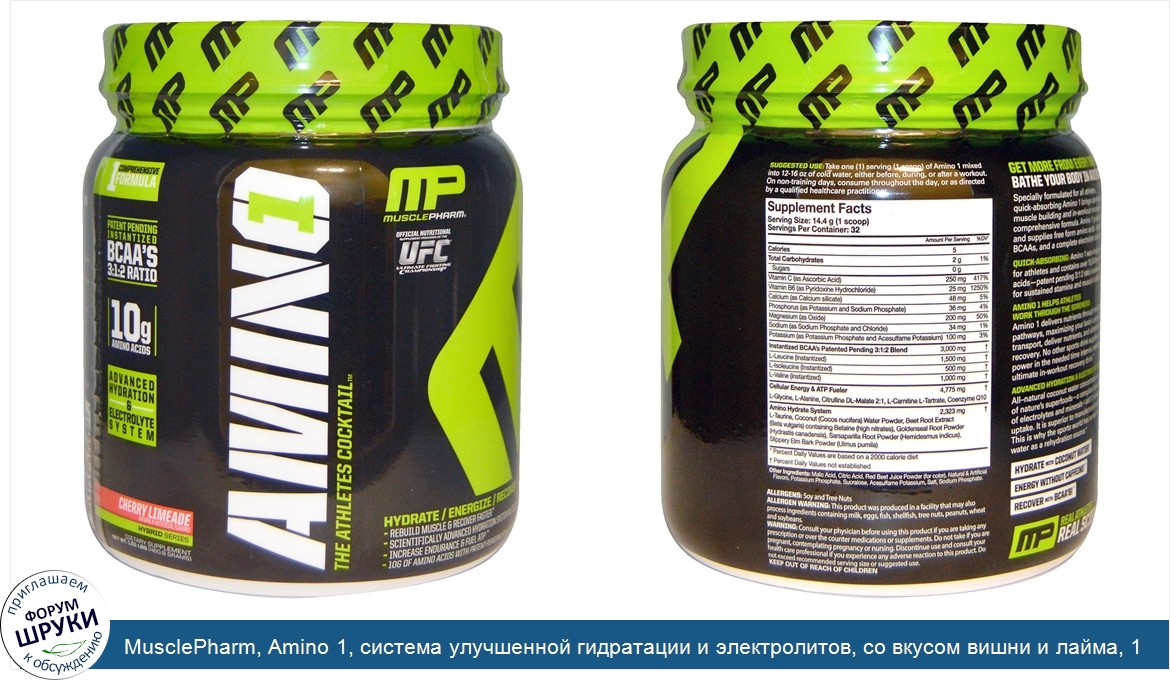 MusclePharm, Amino 1, система улучшенной гидратации и электролитов, со вкусом вишни и лайма, 1,01 фунта (460,8 г)