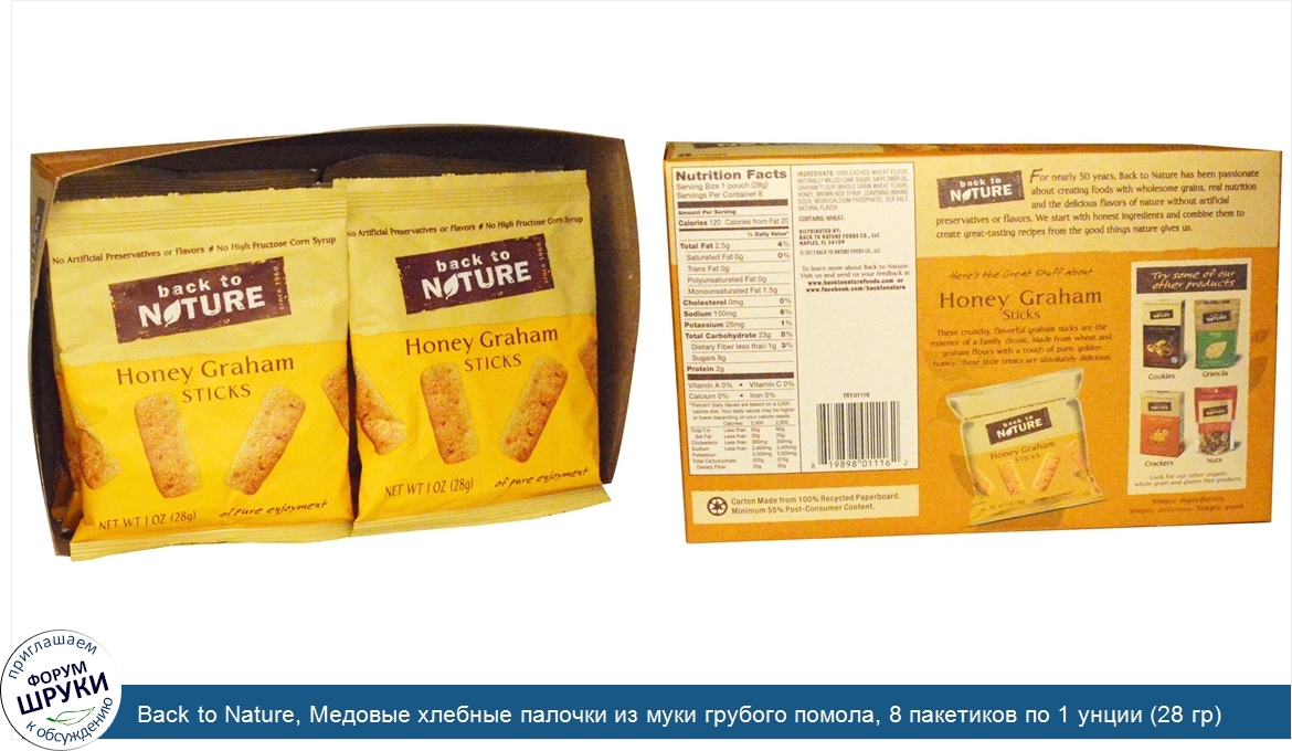 Друзья, если у вас есть отзыв/дополнение/комментарий/вопрос относительно Back to Nature, Медовые хлебные палочки из муки грубого помола, 8 пакетиков по 1 унции (28 гр) каждый - напишите его ответом в эту тему (это будет полезно всему сообществу в целом и вам в отдельности).