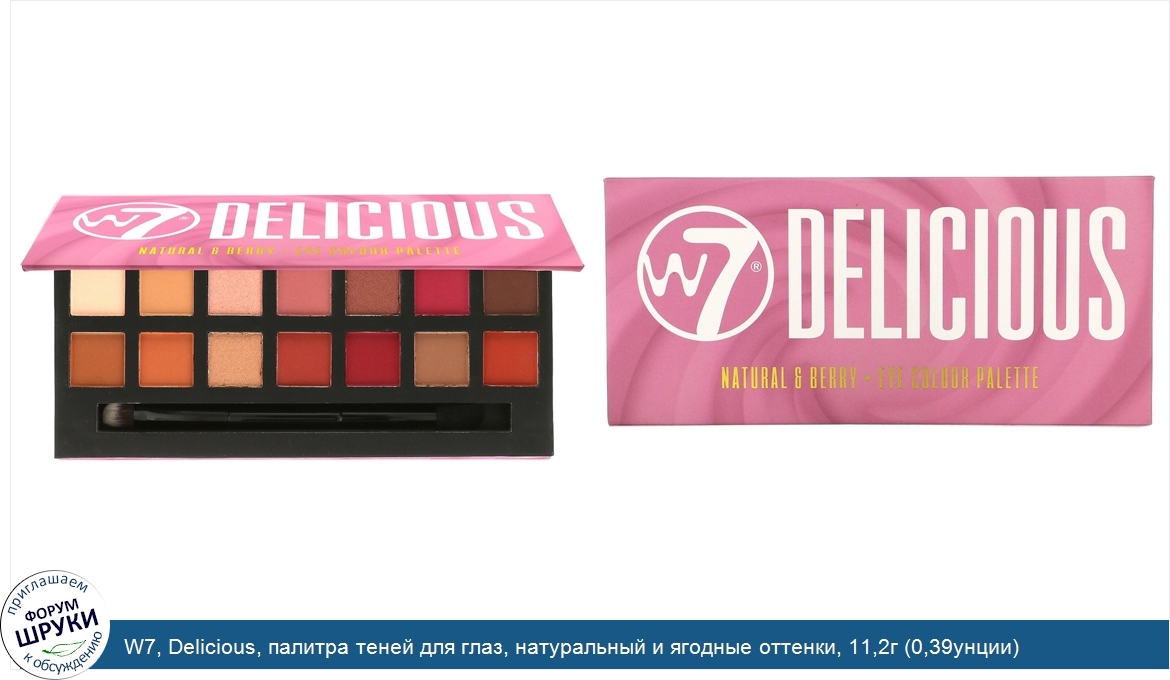 W7, Delicious, палитра теней для глаз, натуральный и ягодные оттенки, 11,2г (0,39унции)