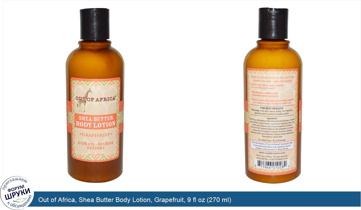 Друзья, если у вас есть отзыв/дополнение/комментарий/вопрос относительно Out of Africa, Shea Butter Body Lotion, Grapefruit, 9 fl oz (270 ml) - напишите его ответом в эту тему (это будет полезно всему сообществу в целом и вам в отдельности).