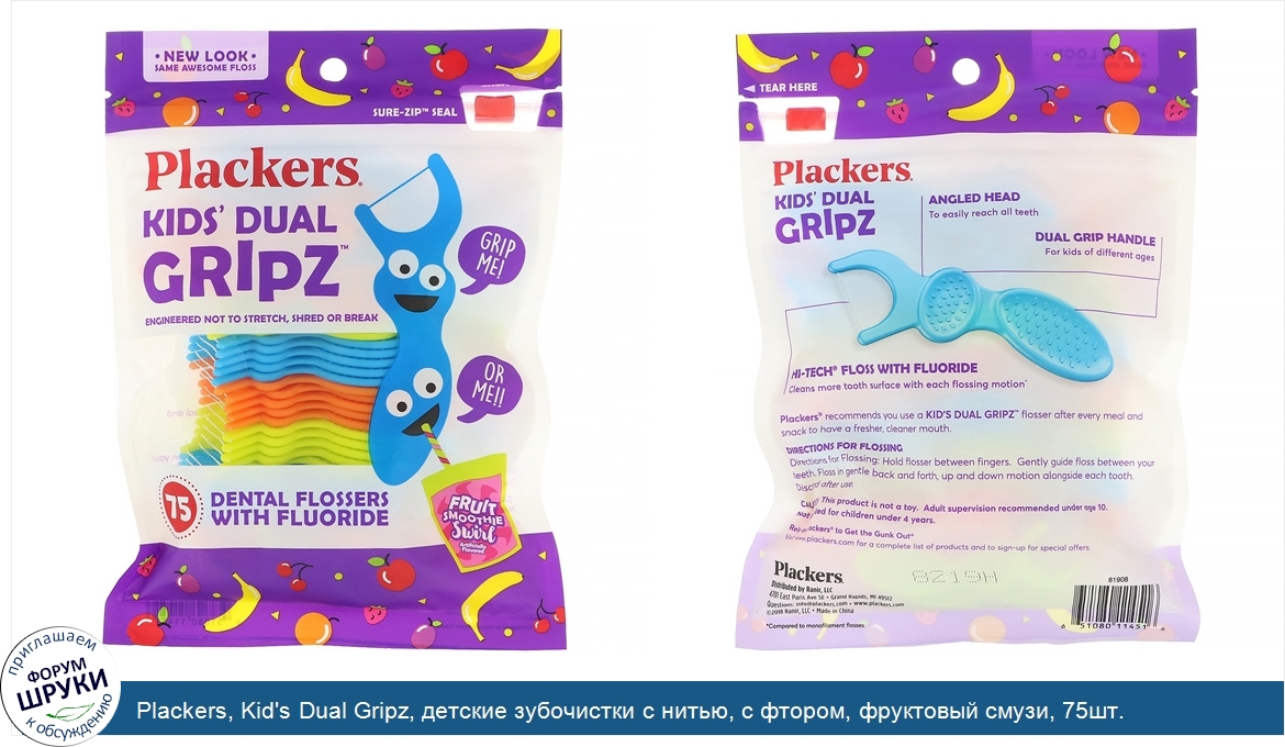 Друзья, если у вас есть отзыв/дополнение/комментарий/вопрос относительно Plackers, Kid's Dual Gripz, детские зубочистки с нитью, с фтором, фруктовый смузи, 75шт. - напишите его ответом в эту тему (это будет полезно всему сообществу в целом и вам в отдельности).