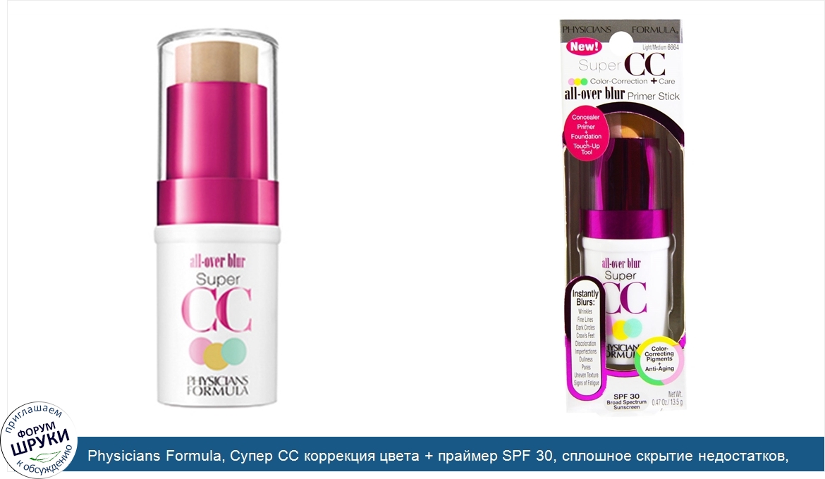 ru Physicians Formula, Супер CC коррекция цвета + праймер SPF 30, сплошное скрытие недостатков, светлый/средний, 0,47 унций (13,5 г)