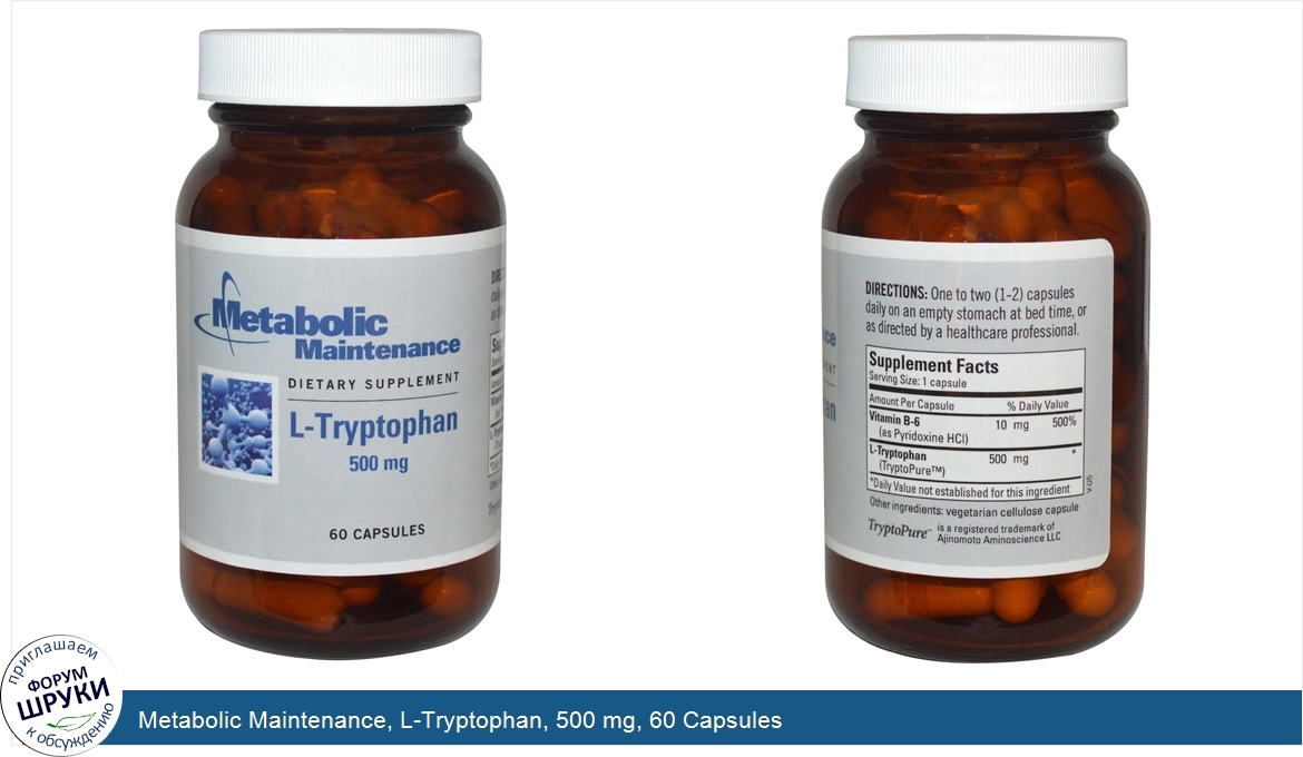 Друзья, если у вас есть отзыв/дополнение/комментарий/вопрос относительно Metabolic Maintenance, L-Tryptophan, 500 mg, 60 Capsules - напишите его ответом в эту тему (это будет полезно всему сообществу в целом и вам в отдельности).