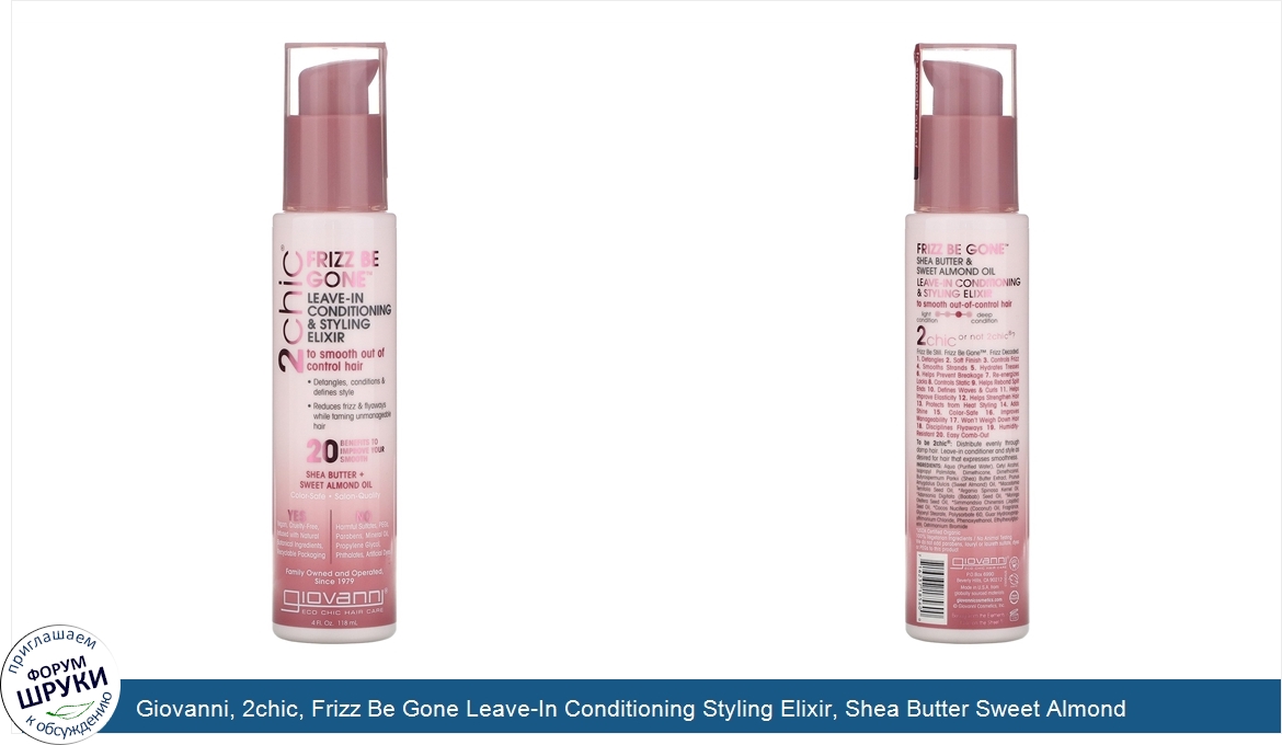 Giovanni, 2chic, Frizz Be Gone Leave-In Conditioning Styling Elixir, Shea Butter Sweet Almond Oil, 4 fl oz (118 ml)
