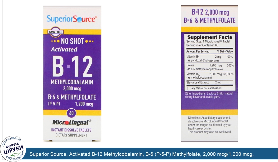 Друзья, если у вас есть отзыв/дополнение/комментарий/вопрос относительно Superior Source, Activated B-12 Methylcobalamin, B-6 (P-5-P) Methylfolate, 2,000 mcg/1,200 mcg, 60 Tablets - напишите его ответом в эту тему (это будет полезно всему сообществу в целом и вам в отдельности).
