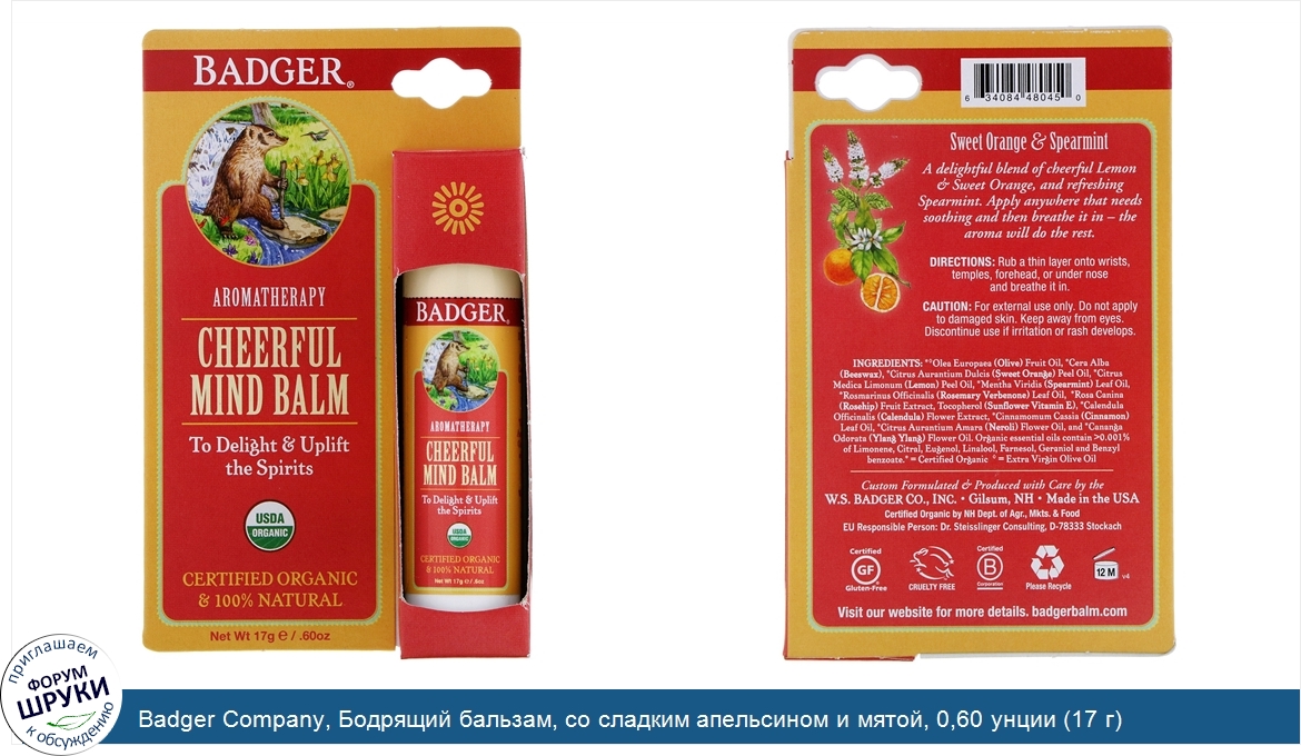 Друзья, если у вас есть отзыв/дополнение/комментарий/вопрос относительно Badger Company, Бодрящий бальзам, со сладким апельсином и мятой, 0,60 унции (17 г) - напишите его ответом в эту тему (это будет полезно всему сообществу в целом и вам в отдельности).