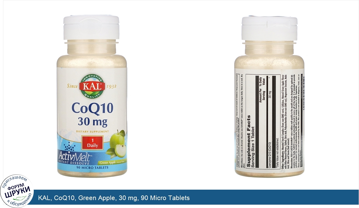 KAL, CoQ10, Green Apple, 30 mg, 90 Micro Tablets