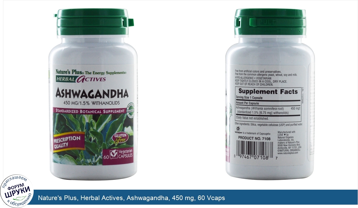 Друзья, если у вас есть отзыв/дополнение/комментарий/вопрос относительно Nature's Plus, Herbal Actives, Ashwagandha, 450 mg, 60 Vcaps - напишите его ответом в эту тему (это будет полезно всему сообществу в целом и вам в отдельности).