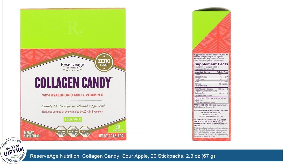 Друзья, если у вас есть отзыв/дополнение/комментарий/вопрос относительно ReserveAge Nutrition, Collagen Candy, Sour Apple, 20 Stickpacks, 2.3 oz (67 g) - напишите его ответом в эту тему (это будет полезно всему сообществу в целом и вам в отдельности).