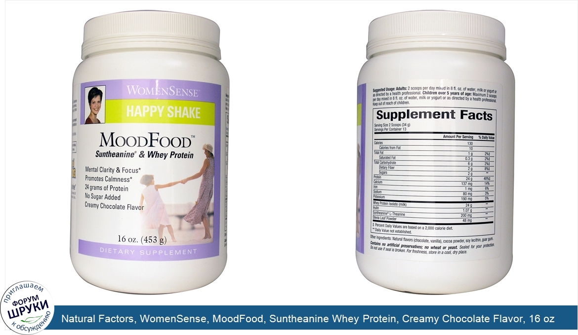 Natural Factors, WomenSense, MoodFood, Suntheanine Whey Protein, Creamy Chocolate Flavor, 16 oz (453 g)