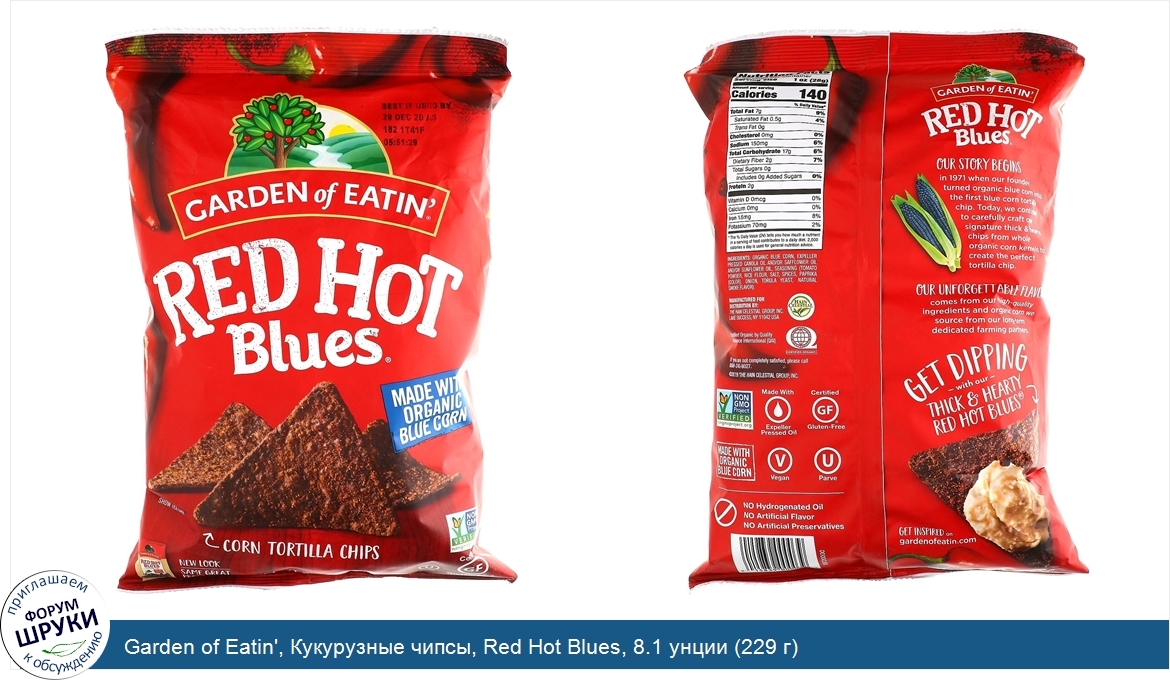 Друзья, если у вас есть отзыв/дополнение/комментарий/вопрос относительно Garden of Eatin', Кукурузные чипсы, Red Hot Blues, 8.1 унции (229 г) - напишите его ответом в эту тему (это будет полезно всему сообществу в целом и вам в отдельности).