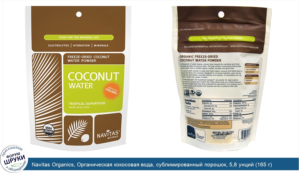 Друзья, если у вас есть отзыв/дополнение/комментарий/вопрос относительно Navitas Organics, Органическая кокосовая вода, сублимированный порошок, 5,8 унций (165 г) - напишите его ответом в эту тему (это будет полезно всему сообществу в целом и вам в отдельности).