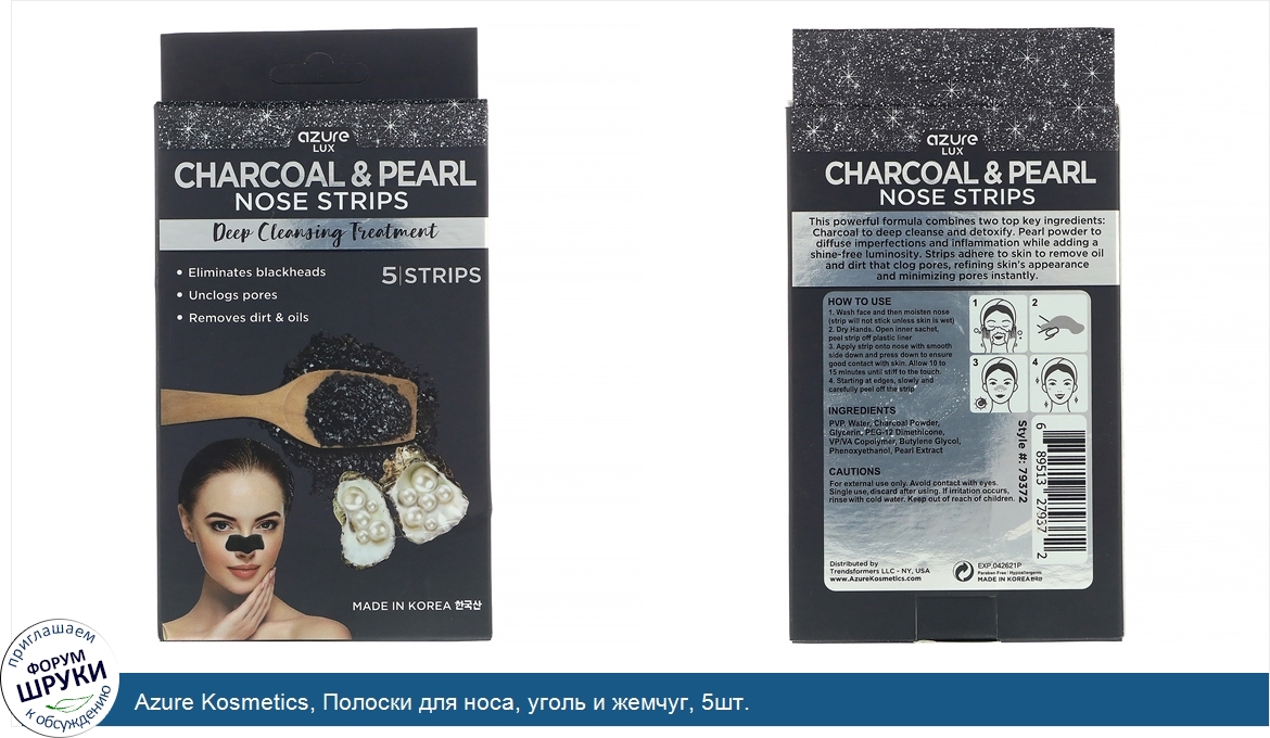 Azure Kosmetics, Полоски для носа, уголь и жемчуг, 5шт.