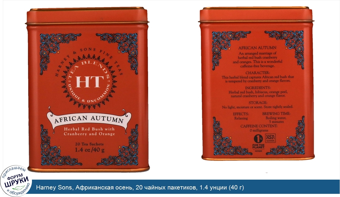 ru Harney Sons, Африканская осень, 20 чайных пакетиков, 1.4 унции (40 г)