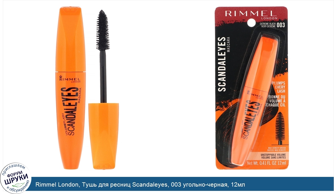 Rimmel London, Тушь для ресниц Scandaleyes, 003 угольно-черная, 12мл