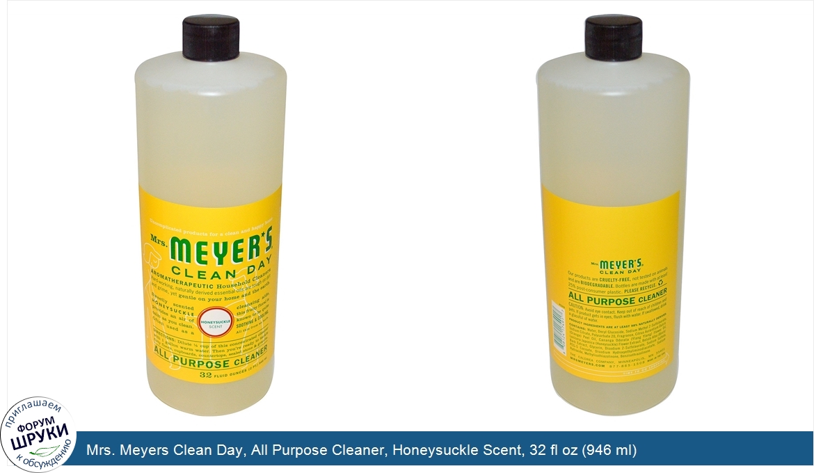 Друзья, если у вас есть отзыв/дополнение/комментарий/вопрос относительно Mrs. Meyers Clean Day, All Purpose Cleaner, Honeysuckle Scent, 32 fl oz (946 ml) - напишите его ответом в эту тему (это будет полезно всему сообществу в целом и вам в отдельности).