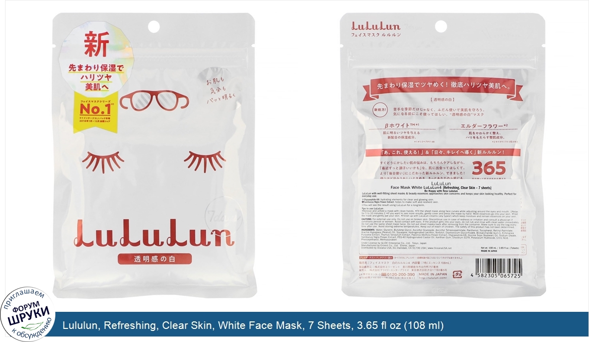 Друзья, если у вас есть отзыв/дополнение/комментарий/вопрос относительно Lululun, Refreshing, Clear Skin, White Face Mask, 7 Sheets, 3.65 fl oz (108 ml) - напишите его ответом в эту тему (это будет полезно всему сообществу в целом и вам в отдельности).