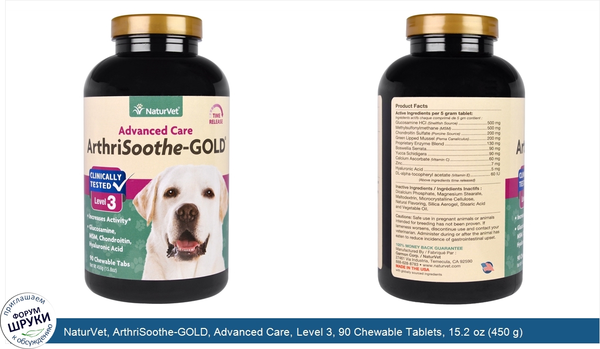 NaturVet, ArthriSoothe-GOLD, Advanced Care, Level 3, 90 Chewable Tablets, 15.2 oz (450 g)