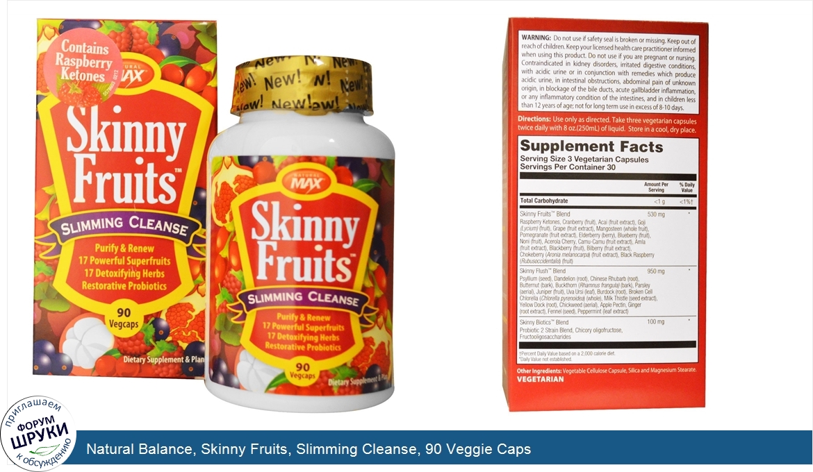 Друзья, если у вас есть отзыв/дополнение/комментарий/вопрос относительно Natural Balance, Skinny Fruits, Slimming Cleanse, 90 Veggie Caps - напишите его ответом в эту тему (это будет полезно всему сообществу в целом и вам в отдельности).