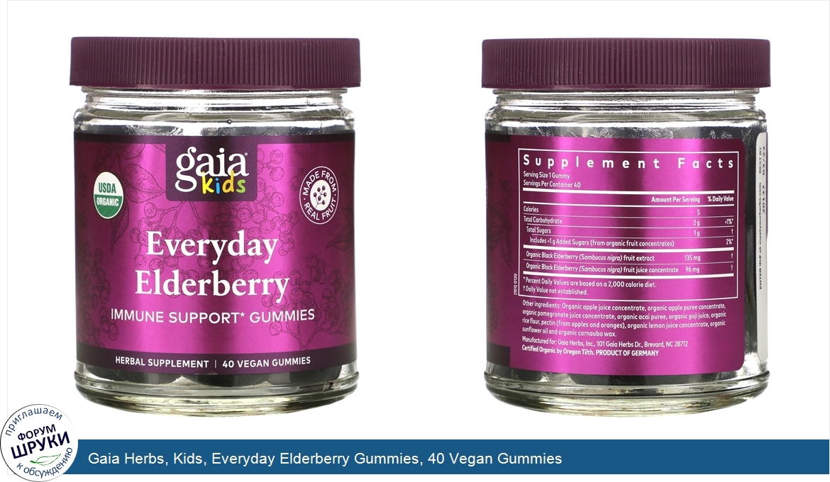 Друзья, если у вас есть отзыв/дополнение/комментарий/вопрос относительно Gaia Herbs, Kids, Everyday Elderberry Gummies, 40 Vegan Gummies - напишите его ответом в эту тему (это будет полезно всему сообществу в целом и вам в отдельности).