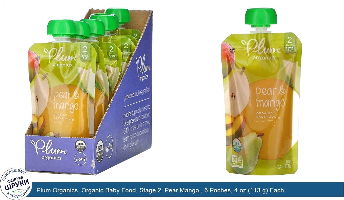 Друзья, если у вас есть отзыв/дополнение/комментарий/вопрос относительно Plum Organics, Organic Baby Food, Stage 2, Pear Mango,, 6 Poches, 4 oz (113 g) Each - напишите его ответом в эту тему (это будет полезно всему сообществу в целом и вам в отдельности).